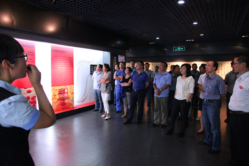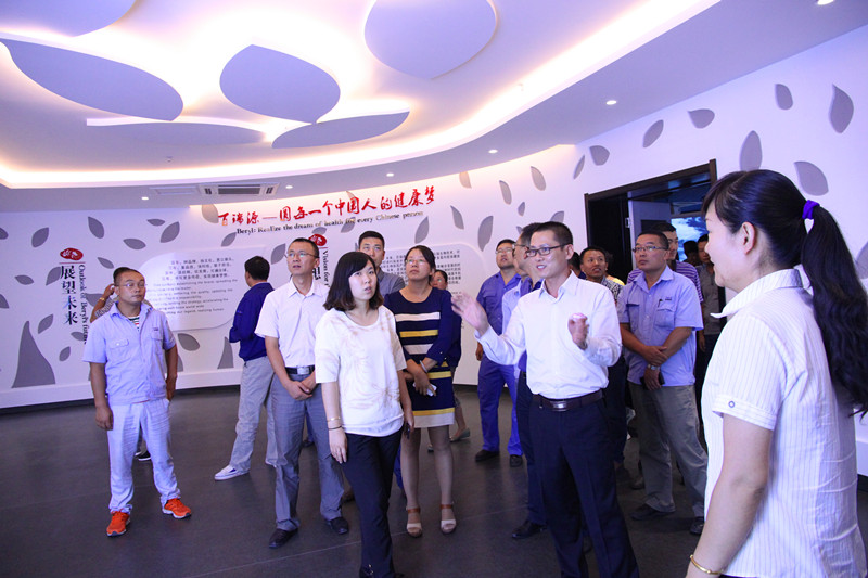 下午3时许,泰瑞制药公司的管理层领导来到百瑞源,在公司总经理助理周广红和徐娟的带领下,对百瑞源的除湿净化车间、保健食品GMP车间、中试车间、研发实验室、中国枸杞馆、企业文化馆、职工活动中心等进行了参观。在参观学习中,每到一个地方,泰瑞制药公司的管理层进行了详细的记录,并用手机认真拍摄下来,边听、边看、边记、边议,不放过任何学习机会。
