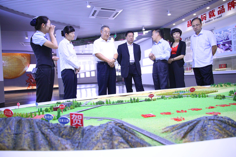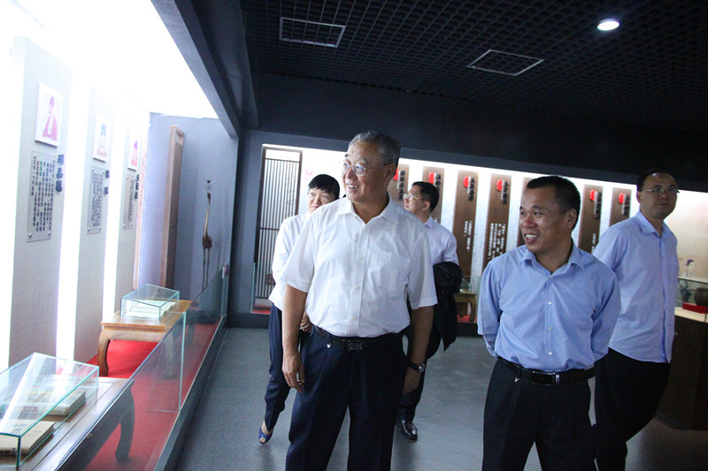 中国机械工业联合会会长王瑞祥(左一)与百瑞源常务副总姚卫鹤先生(右一)在百瑞源企业文化馆交流