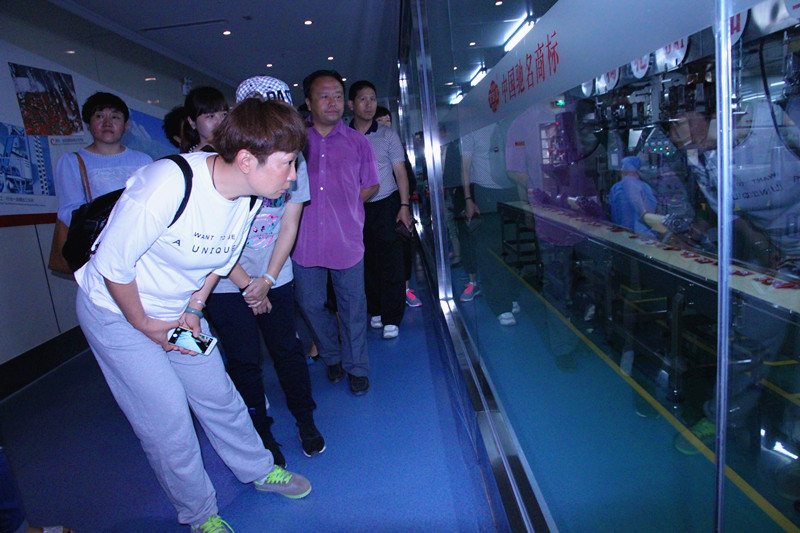 我们的食品检测中心在身后呢,你们看啥呢?